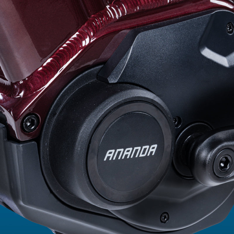 - Leistungsstark, auch bergauf zuverlässig: Der 250 W starke Mittelmotor von Ananda liefert mit 90 Nm Drehmoment kraftvolle Unterstützung auch an Steigungen.